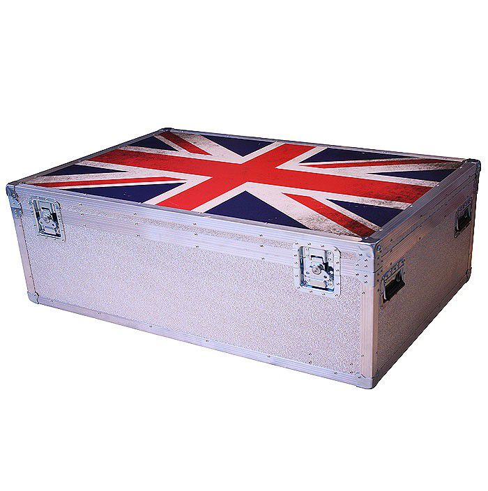 - Baú feito em compensado 18 mm, revestido com fórmica texturizada de alumínio e bordas com perfis de aluminio.